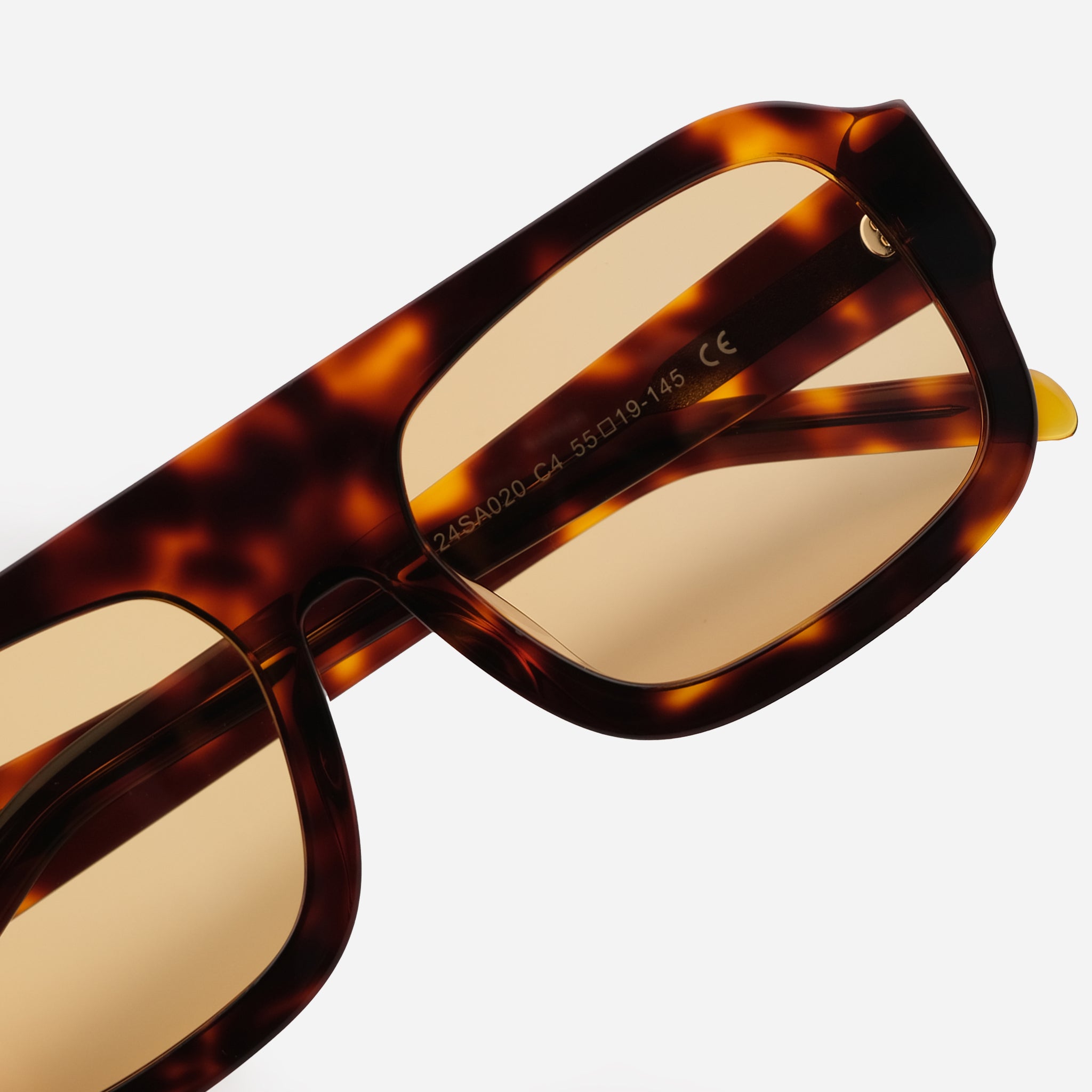 • Handcrafted using premium caramel tortoise bio-acetate